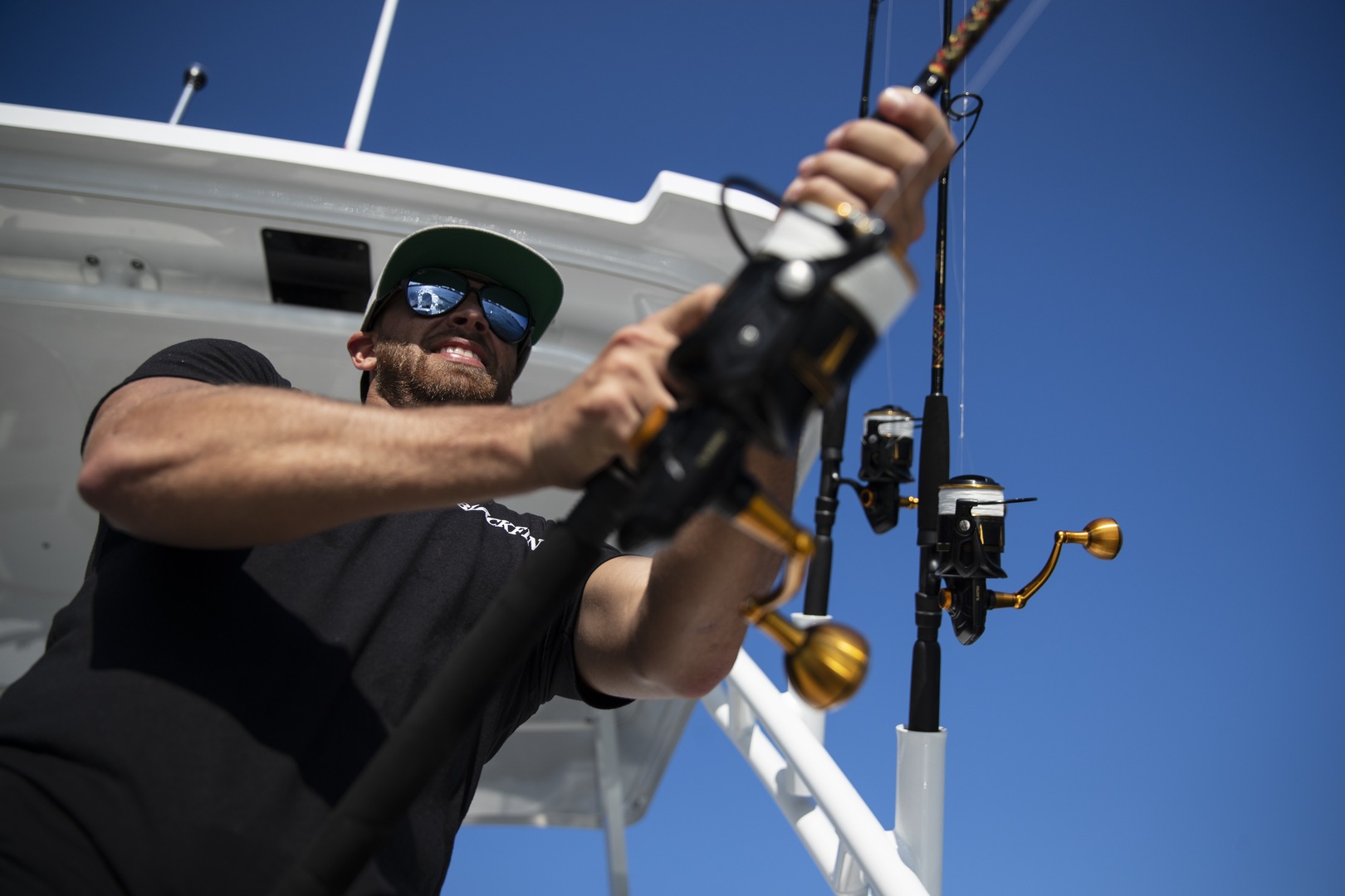 Fiberglass Hardtop with Rod Holders, LED Lighting & LED Spreader Lights