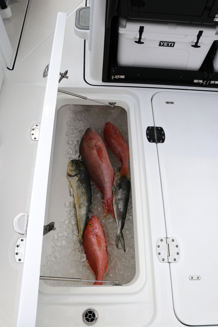 | Aft Prep Station, Fiberglass w/ Pull-Out/Removable Yeti Tundra, (45QT ) Coolers (2), Fiberglass Sink (1) w/Faucet, Storage Drawers (4) Aft. Drawers Stbd (2) w/ Utility Boxes (4),Drawers Port (2) w/Trash Can. w/ Electric SS Grill. | Standard |